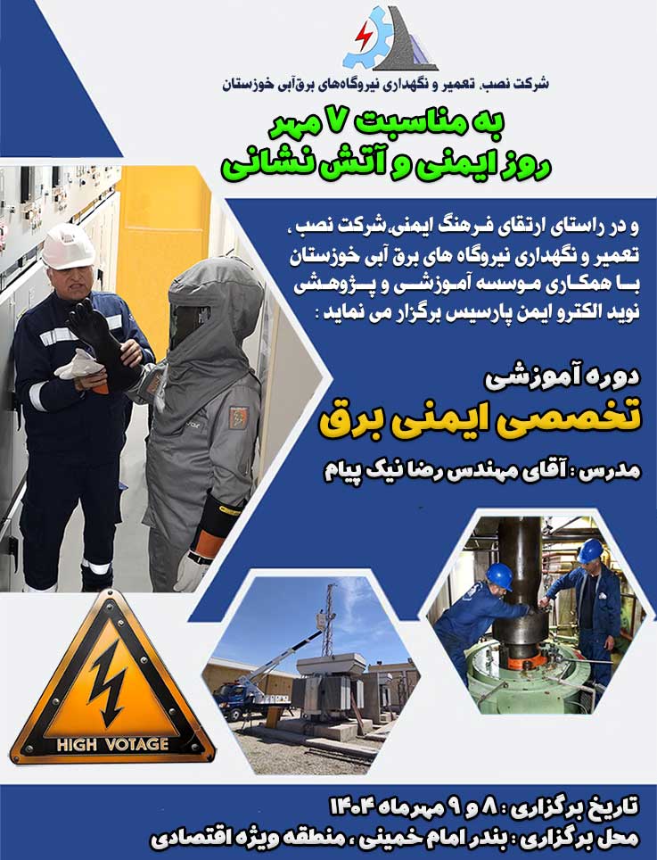 برگزاری دوره آموزشی تخصصی ایمنی برق - شرکت نصب، تعمیر و نگهداری نیروگاه های برق آبی خوزستان